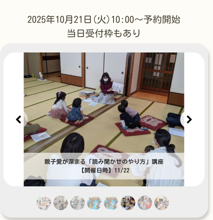 「年齢+成長に合う絵本の選び方」など、絵本のふれあい方を学べます