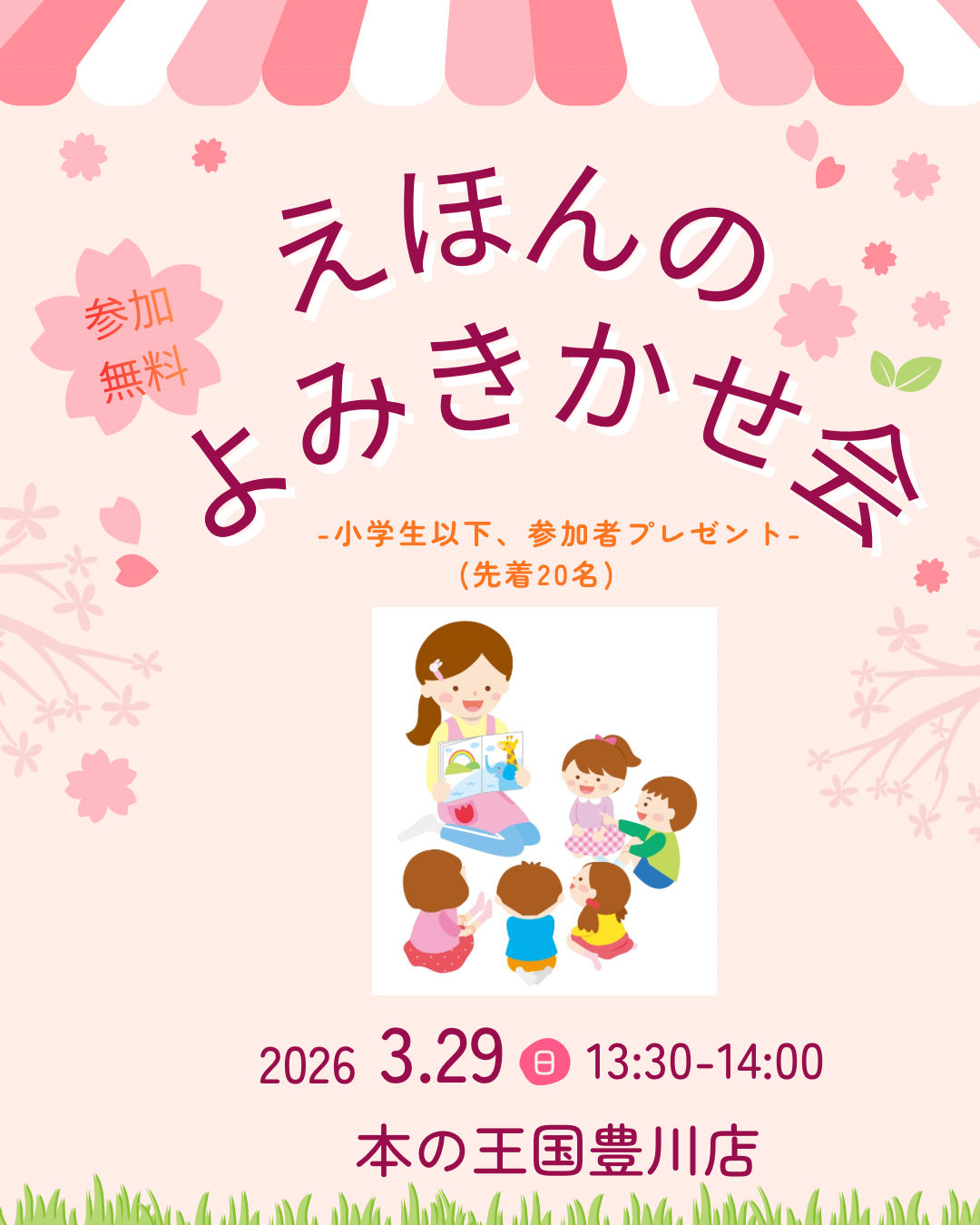 本の王国豊川店様にて「3/29(日)13:30えほんのおはなし会」開催します